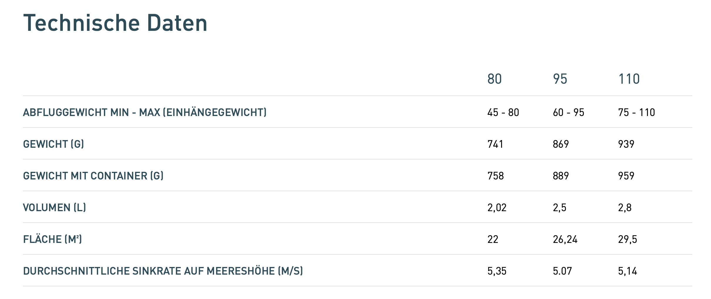 X LITE 80 mit einem Abfluggewicht von 45 bis 80 kg ohne den Schirm.